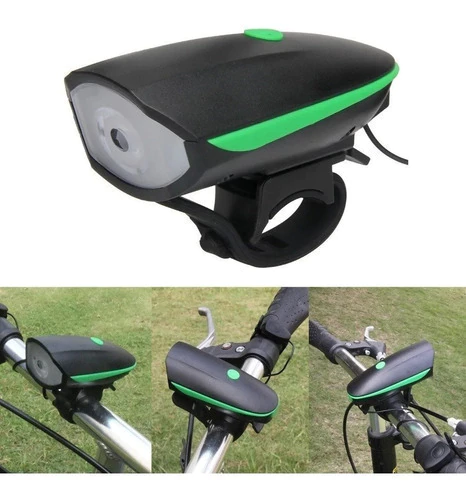 Luz de bicicleta delantera, con bocina SUPER SONORA con pulsado 5 tonos RECARGABLE USB , esta luz es ideal para utilizar en tu bicicleta para iluminar tu camino, también cuenta con una bocina de gran potencia de ruido, resiste a la lluvia y cuenta con luz alta, luz parpadeante baja y luz parpadeante alta. Para seleccionar uno de los 5 tonos va presionado el botón por unos 4 segundos y vuelve a apretar . Producto en caja.