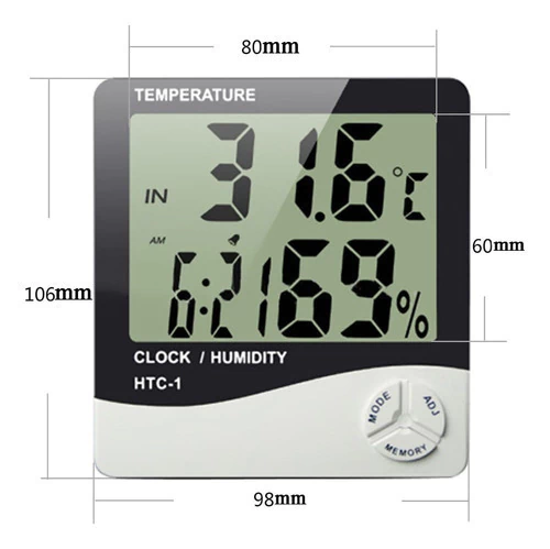 Termo Higrómetro Digital Medidor De Humedad Y Temperatura Reloj