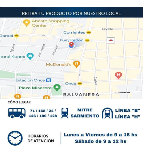 Si, una vez acreditado el pago podes retirar tu pedido por nuestro local a la calle situado en le barrio de once de Lunes a Viernes de 9 a 18hs, Sabado de 9 a 12hs.