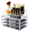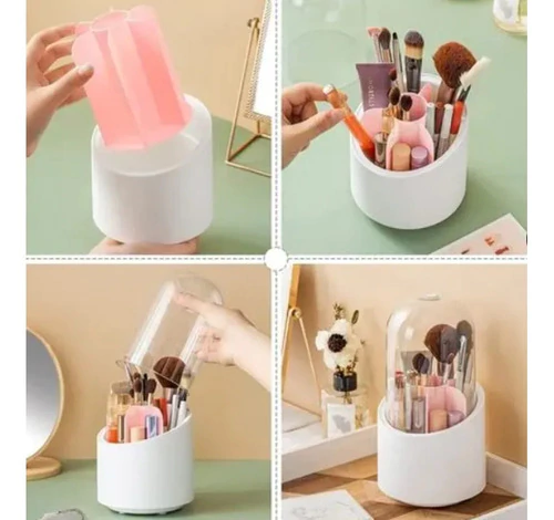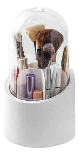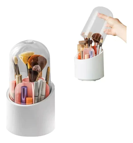 -Organizador redondo giratorio para brochas de maquillaje, con tapa acrílica en forma de domo para evitar acumulación de polvos.